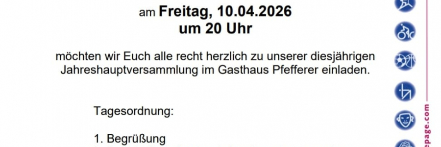 Einladung zur Jahreshauptsammlung 2026 am Freitag, 10.04. um 20Uhr