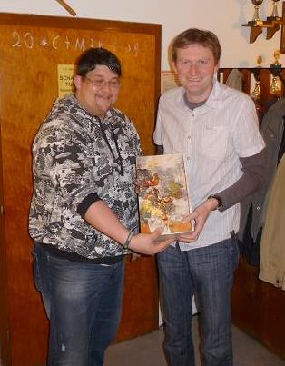 Der neue 1. Vorstand Ferber Rainer übergibt ein Abschiedsgeschenk an den Ex Chef Lechner Lothar.